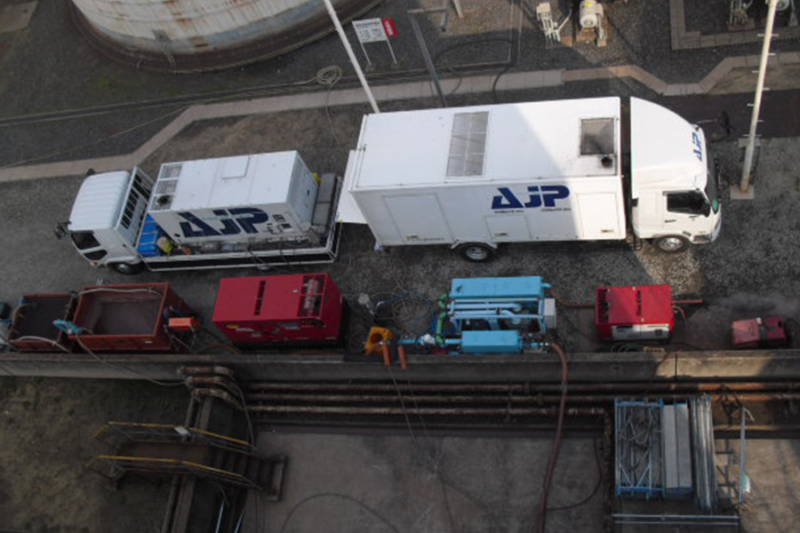 サーフジェットにより回収した水と剥離片を自動で分別します。水は処理水として一部を再利用しながら、放流しても問題無いレベルまで汚染物質を取り除きます。脱水ケーキは産業廃棄物として細かく分別し、そのまま産廃業者へ受け渡しする事が可能です。サーフジェットと組み合わせて使用する事で、環境に配慮したエコでスピーディーな施工を実現します。